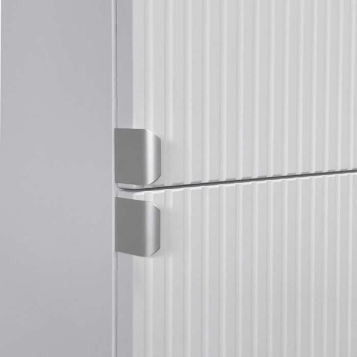 Напольная шкаф-колонна отличное решение для хранения разных предметов необходимых в ванной комнате. За верхней и нижней створками по три полки. Фасады изготовлены из МДФ декорированы вертикальной фрезеровкой и обтянуты в белую матовую пленку с эффектом Soft Touch. Дверцы могут быть подвешены как в правом, там и в левом исполнении. Петли оборудованы механизмами плавного закрывания.