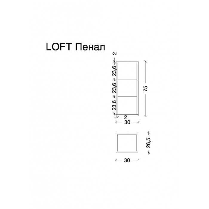 Пенал Armadi Art LOFT низкий антрацит, полки стекло 895-A Loft