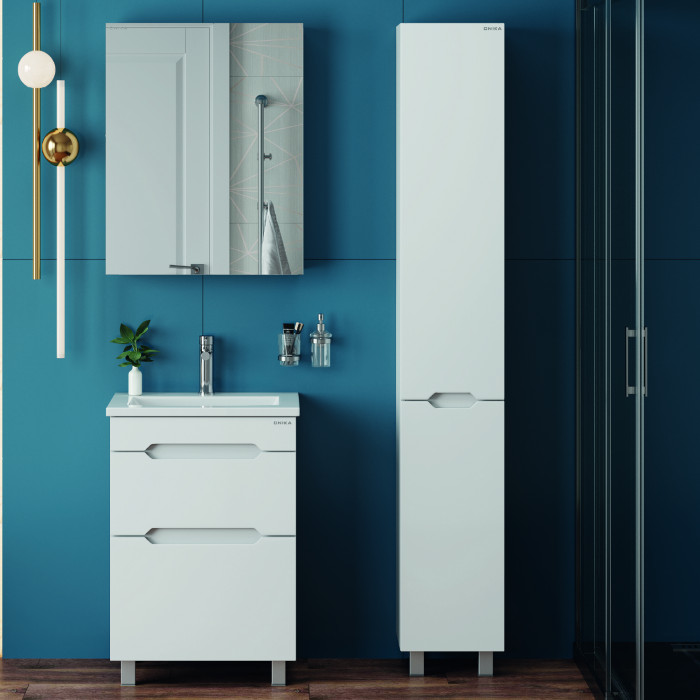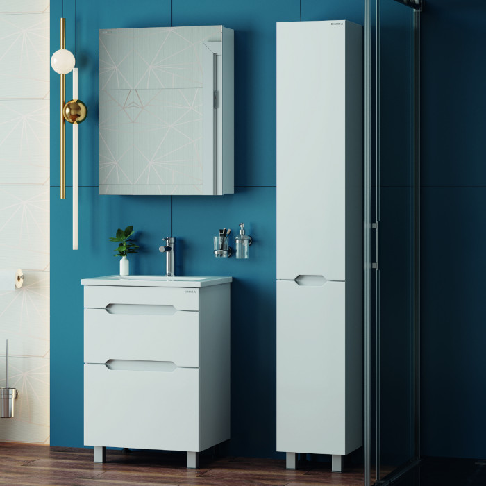 Пенал имеет два отделения за распашными дверцами с доводчиками, полки внутри регулируются по высоте. Ручки, изящно интегрированные в фасады, позволяют сделать эксплуатацию мебели более удобной и практичной.