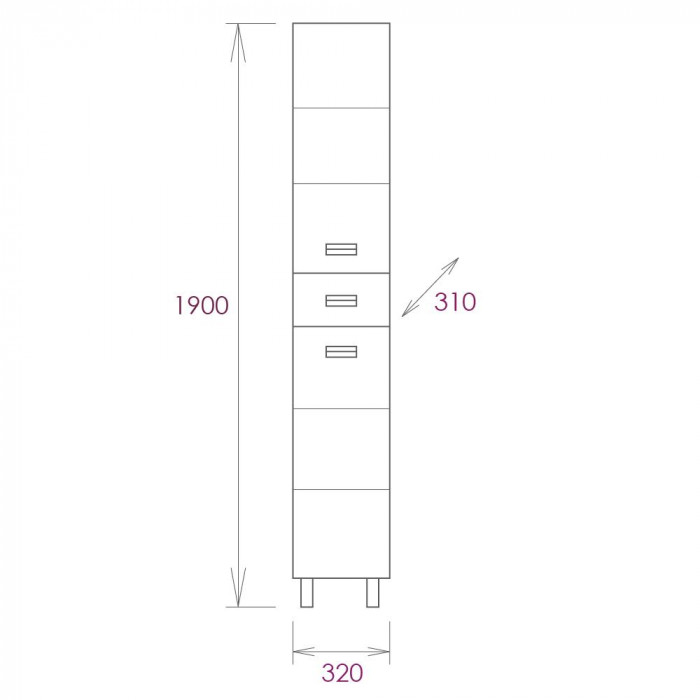 Удобный ящик с направляющими полного выдвижения посередине пенала и два больших отделения, разделенные горизонтальными полочками, за распашными дверями с механизмом плавного закрывания - отличное место для хранения необходимых вещей.