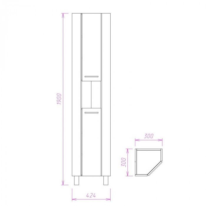 Пенал имеет универсальную ориентацию: при установке верх и низ пенала можно менять местами, а дверцы могут открываться как влево, так и вправо.