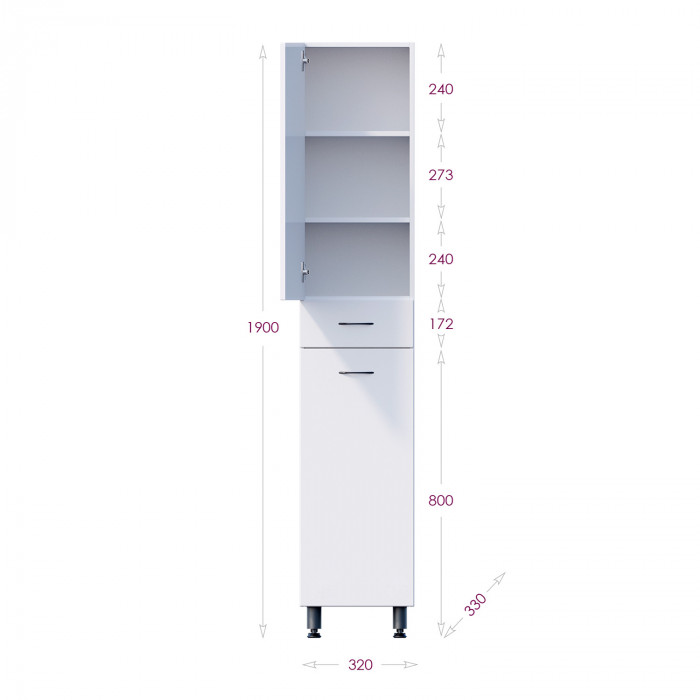 Корпус пенала выполнен из ЛДСП, фасад - из МДФ в пленке, устойчивых к механическим воздействиям, перепадам температур и высокой влажности.