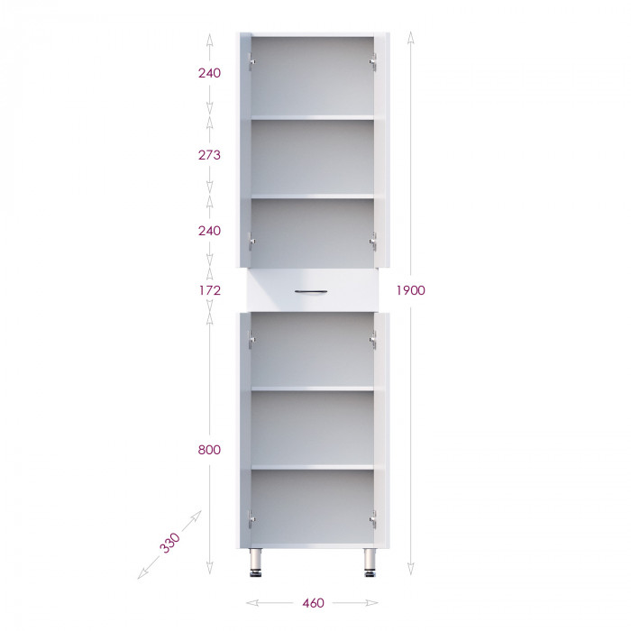 Корпус пенала выполнен из ЛДСП, фасад - из МДФ в пленке, устойчивых к механическим воздействиям, перепадам температур и высокой влажности.