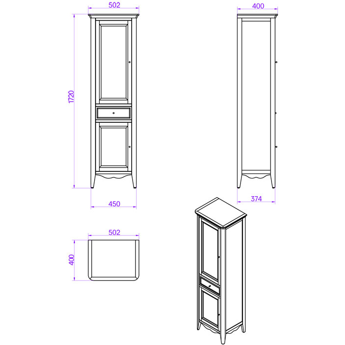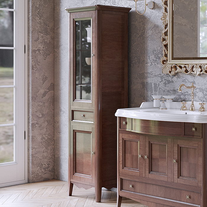 Пенал TW collection VERONICA NUOVO VER3050S-N Дерево TW Veronica, Колонна 50.2/45*40/37.4*h172см, 1выдв.ящик, 2 распашные дверки, доводчики Blum (петли слева-SX), цвет: NOCE, ручки: Riflesso бронза