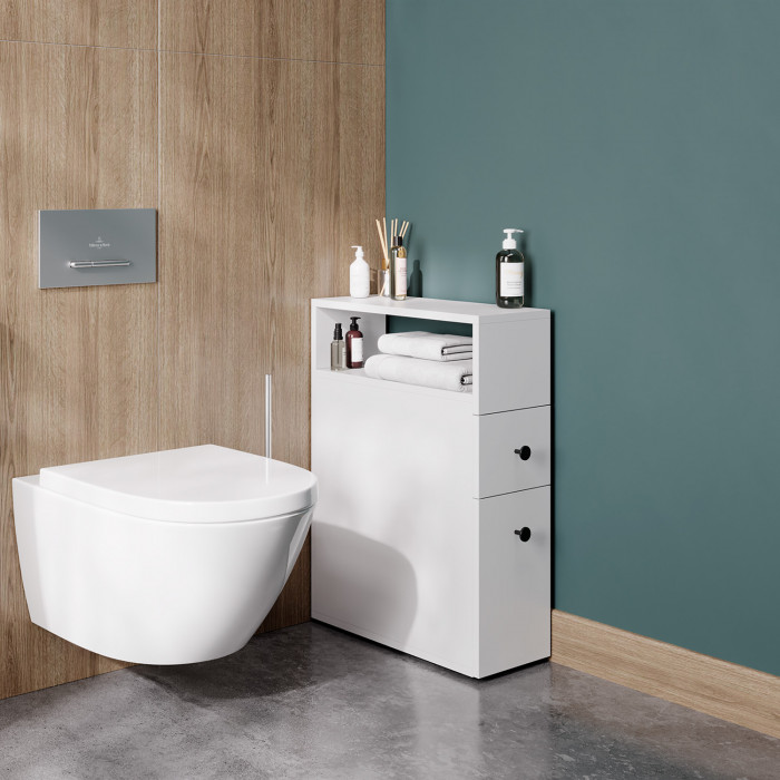 Полупенал прослужит органайзером для хранения средств личной гигиены, туалетной бумаги, для чистящих и моющих средств, для ароматизаторов и для освежителя воздуха, а также прочих аксессуаров, которые удобно держать рядом под рукой.