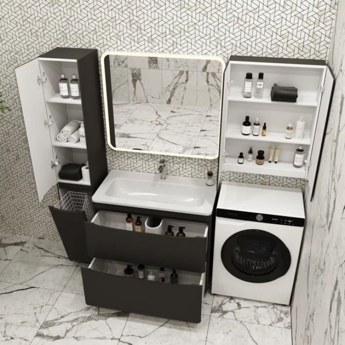 Подвесной шкаф Style Line Бергамо мини 600 Люкс антискрейтч черный, PLUS СС-00002359 МДФ Пленка подвесной с полками 2 года Россия ПШ "Бергамо мини 600" — это стильный и функциональный подвесной шкаф для ванной комнаты, выполненный в черном цвете с антискретч покрытием, которое защищает поверхность от царапин и повреждений. Модель компактного размера (600 мм) идеально подходит для небольших пространств. Оснащённая удобной системой хранения, эта подвесной шкаф поможет организовать в ванной комнате порядок и комфорт. Изготовленная из влагостойкого МДФ, она сочетает в себе эстетику, практичность и долговечность.