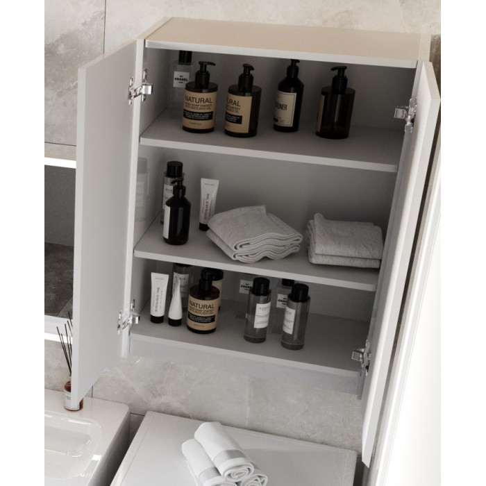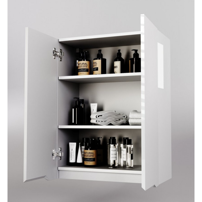 Подвесной шкаф Style Line Марелла мини 600 Люкс антискрейтч белый глянец, PLUS СС-00002422 МДФ Пленка подвесной с полками 2 года Россия ПШ "Марелла мини 600" — это стильный и функциональный подвесной шкаф для ванной комнаты, выполненный в белом глянцевом цвете с антискретч покрытием, которое защищает поверхность от царапин и повреждений. Модель компактного размера (600 мм) идеально подходит для небольших пространств. Оснащённая удобной системой хранения, эта подвесной шкаф поможет организовать в ванной комнате порядок и комфорт. Изготовленная из влагостойкого МДФ, она сочетает в себе эстетику, практичность и долговечность.