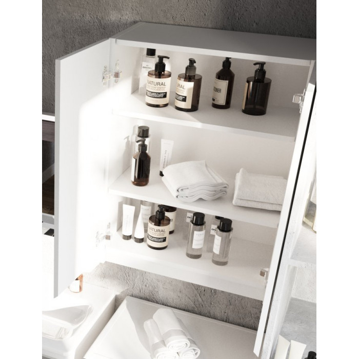 Подвесной шкаф Style Line Марелла мини 600 Люкс антискрейтч белый матовый, PLUS СС-00002424 МДФ Пленка подвесной с полками 2 года Россия ПШ "Марелла мини 600" — это стильный и функциональный подвесной шкаф для ванной комнаты, выполненный в белом матовом цвете с антискретч покрытием, которое защищает поверхность от царапин и повреждений. Модель компактного размера (600 мм) идеально подходит для небольших пространств. Оснащённая удобной системой хранения, эта подвесной шкаф поможет организовать в ванной комнате порядок и комфорт. Изготовленная из влагостойкого МДФ, она сочетает в себе эстетику, практичность и долговечность.
