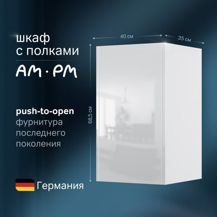 Шкаф с полками 40 см, высота 70 см, белый глянец, универсальный AM.PM Func M8FCH0402WG Белый AM.PM M8FCH0402WG Func, шкаф с полками 40 см (В 700мм), цвет белый глянец https://my-am.pm/upload/iblock/cc0/cc084c529347bfcb56f93098f9da51bb.rar Коллекция модульной мебели Func отличается своей функциональностью вариативностью и мобильностью. Наши инженеры продумали и учли каждую деталь чтобы сделать взаимодействие с продуктами максимально простым и комфортным для всех членов семьи.