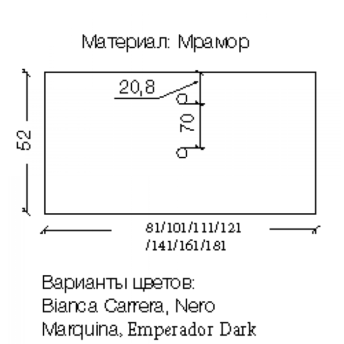 Столешница мрамор 81см Bianca Carrera под LV-6 чашу 857-081-BC