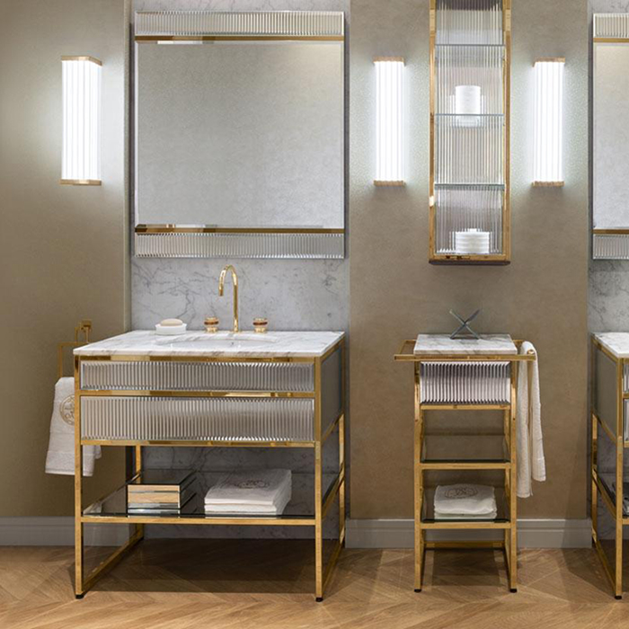 База под раковину Oasis Academy 0ACSPG066OR Золото OASIS ACADEMY Зеркало 660х1000х20 мм., фурнитура золото, отделка Ribbed Mirror чёрный глянцевый