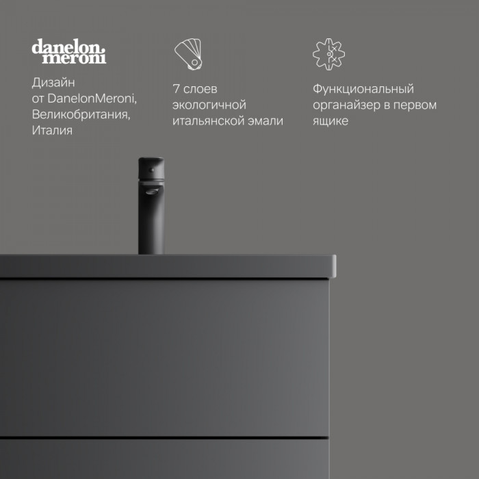 Трендовый дизайн мебели для ванной комнаты Gem не уступает комплектам по гораздо более высокой цене. Теперь цветовая палитра коллекции Gem дополнена стильным матовым черным цветом!