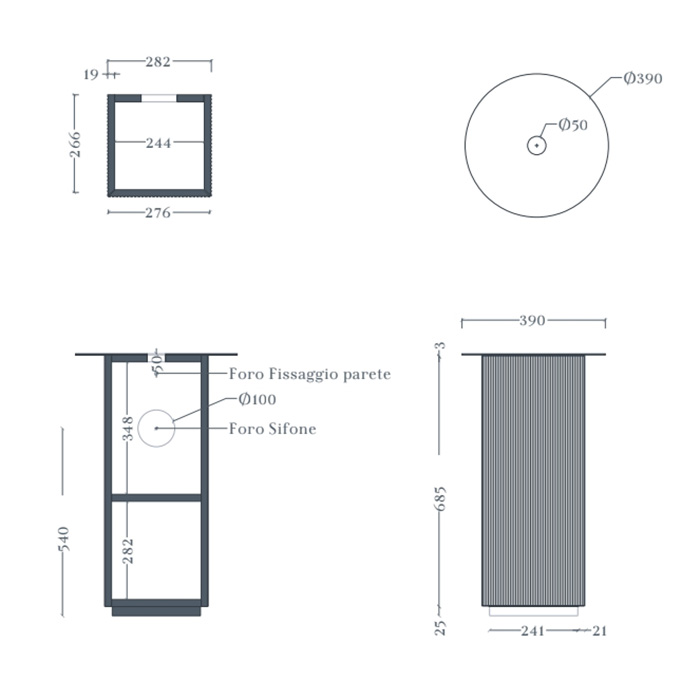 Базы под раковину Artceram Mono ACM041 56 Artceram MONO Тумба напольная Ø39хh72 см для настольных раковин c одной дверцей, хромированный слив в комплекте, цвет moka