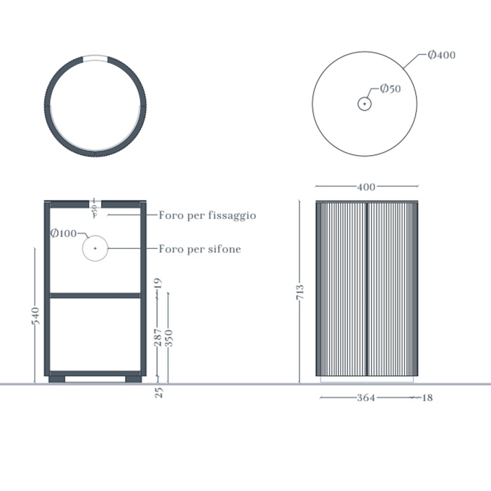 Базы под раковину Artceram Opera ACM042 52 Artceram OPERA Тумба напольная Ø40хh72 см для настольных раковин c двумя дверцами, хромированный слив в комплекте, цвет platinum