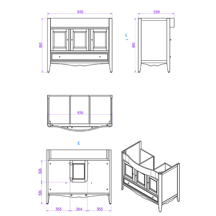Базы под раковину TW collection VERONICA NUOVO VER4105-G+AR874bi*1 комплект TW Veronica, База с раковиной Simas AR874bi*1 105*56см, с 1отв., 3 расп. дв. и 1ящик, доводч. Blum, ручки: Riflesso бронза, цвет: GRIDGIO