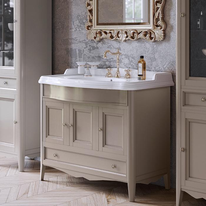 Базы под раковину TW collection VERONICA NUOVO VER4105-T+AR874bi*1 комплект TW Veronica, База с раковиной Simas AR874bi*1 105*56см, с 1отв., 3 расп. дв. и 1ящик, доводч. Blum, ручки: Riflesso бронза, цвет: TORTORA