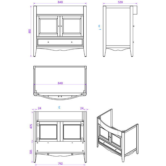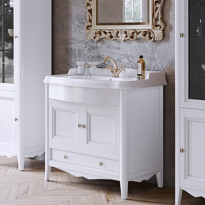 Комплект мебели TW collection VERONICA NUOVO VER3090-B+AR864bi*1 комплект Белый TW Veronica, База с раковиной Simas AR864bi*1 90*56см, с 1отв., 2 распашные дверки+1 выдв.ящик, доводч. Blum, ручки: Riflesso бронза, цвет: bianco