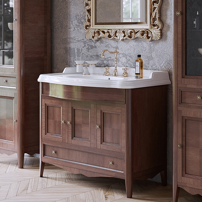 Комплект мебели TW collection VERONICA NUOVO VER4105-N+AR874bi*1 комплект Дерево TW Veronica, База с раковиной Simas AR874bi*1 105*56см, с 1отв., 3 расп. дв. и 1ящик, доводч. Blum, ручки: Riflesso бронза, цвет: noce