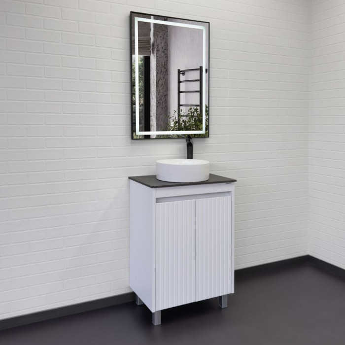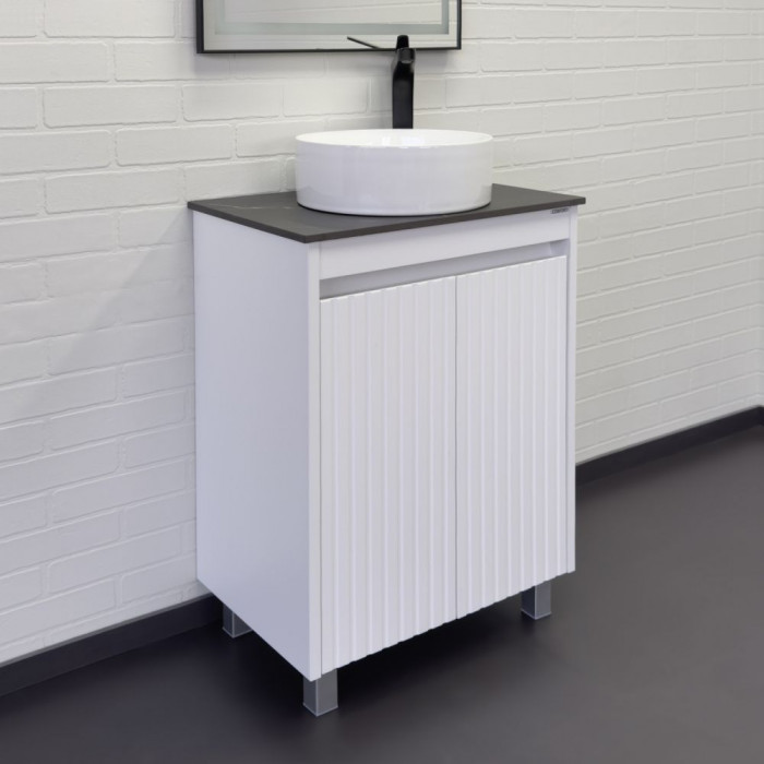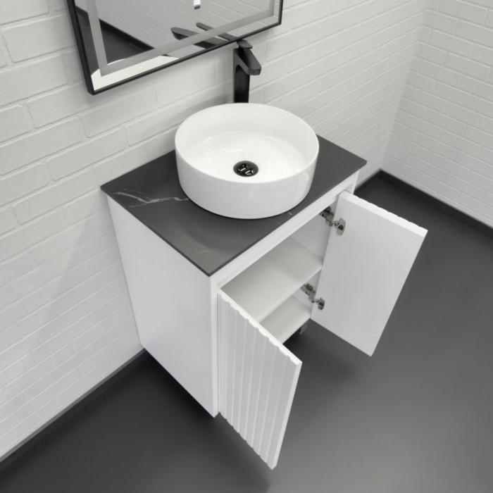 Напольная тумба-умывальник Comforty Двина-60НД белая матовая со столешницей мрамор Калакатта Блэк с раковиной 9111 00-00019598