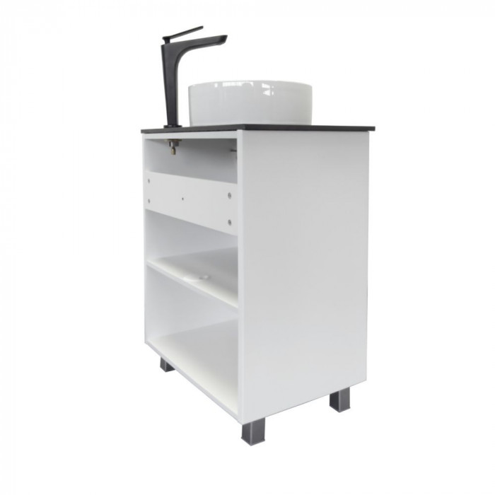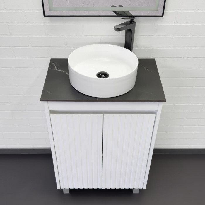 Комплектация: накладная керамическая раковина Comforty 9111, черная матовая столешница из керамогранита под мрамор Калакатта Блэк.