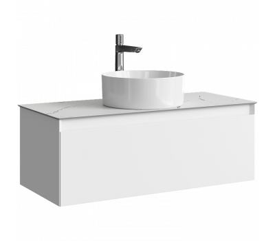 Подвесная тумба 100 см AQWELLA GE01101WM+STG1014X456MW Белый Подвесная тумба с одним ящиком 100 см, цвет белый со столешницей мрамор белый и наставным умывальником Crea 38 Ring UM-CRE38/1-oc-R Керамика краска матовая МДФ Современный стиль Россия 2 года