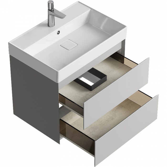 Подвесная тумба 65 см AQWELLA GE01652ST Светло-серый Подвесная тумба с двумя ящиками 65 см, цвет серый туман с умывальником Вилис 650 4610119204013 Керамика краска матовая МДФ Современный стиль Россия 2 года