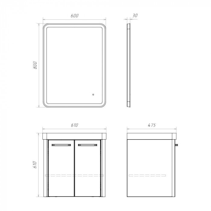 Фасад тумбы из МДФ окрашен белой матовой эмалью. Боковые стенки скруглены под радиус 30 мм. Оригинальные ручки под естественный хват из алюминиевого сплава.