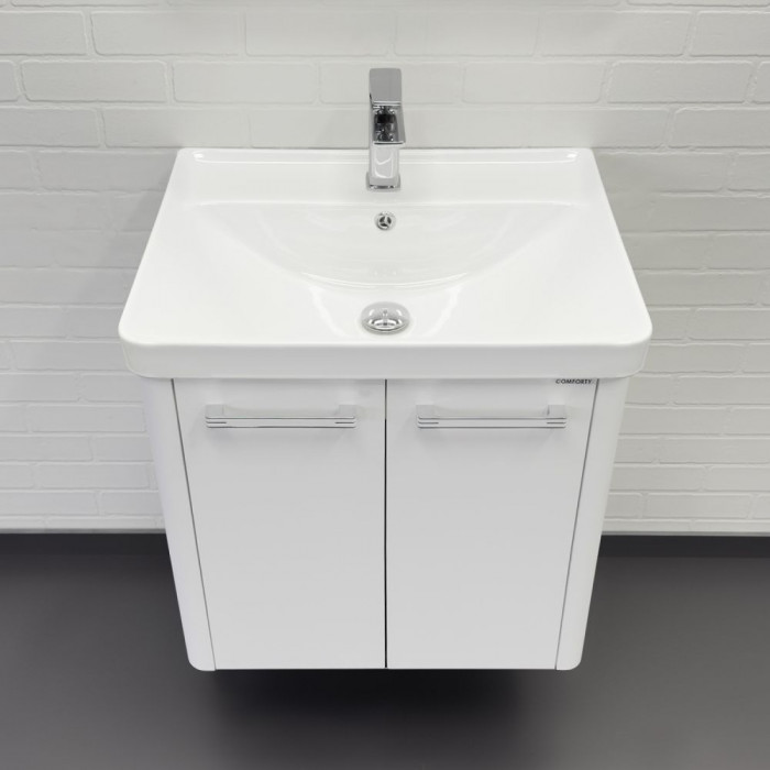 Подвесная тумба-умывальник Comforty Катунь 60ПД белая матовая с раковиной 4460 00-00018663 Санфарфор МДФ матовое МДФ матовое хром Подвесной Россия Гарантийный срок 2 года Торговая марка: Comforty