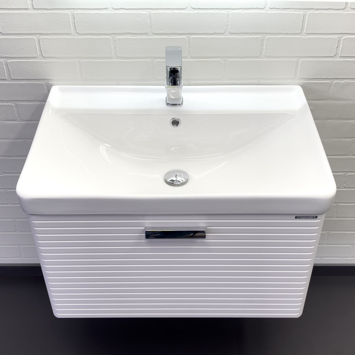 Подвесная тумба-умывальник Comforty Танжер-70П белая матовая с раковиной Comforty 4470 00-00019565 Санфарфор ВЛДСП матовое МДФ матовое хром Подвесной Россия Гарантийный срок 2 года Торговая марка: Comforty