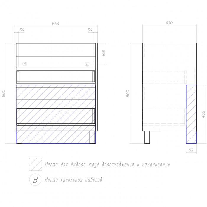 Корпус VIGO тумбы под раковину 266 Neo, Glem, Finlay 700-0-2 Como 266 2 года 2 выдвижных ящика, направляющие скрытого монтажа, мягкое закрывание, интегрированная ручка, 2 опоры квадратные регулируемые, 1 сифон ЛДСП с ящиками