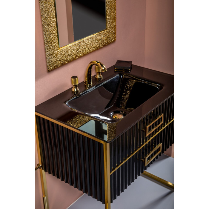 Тумба Armadi Art MONACO 80см черная глянец + золото под раковину моноблок 866-080-BG