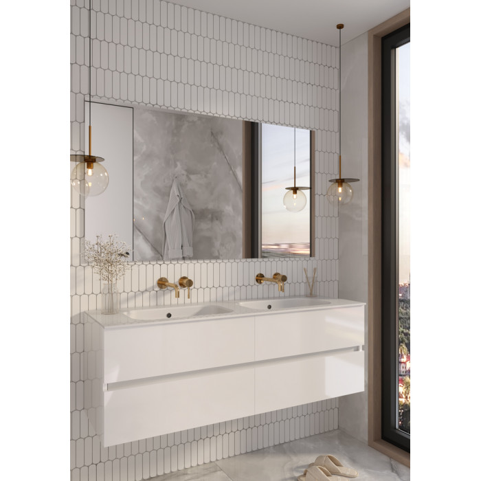 Тумба без раковины Armadi Art Vallessi 140*46см Белый глянец 4 полки 837-140-W