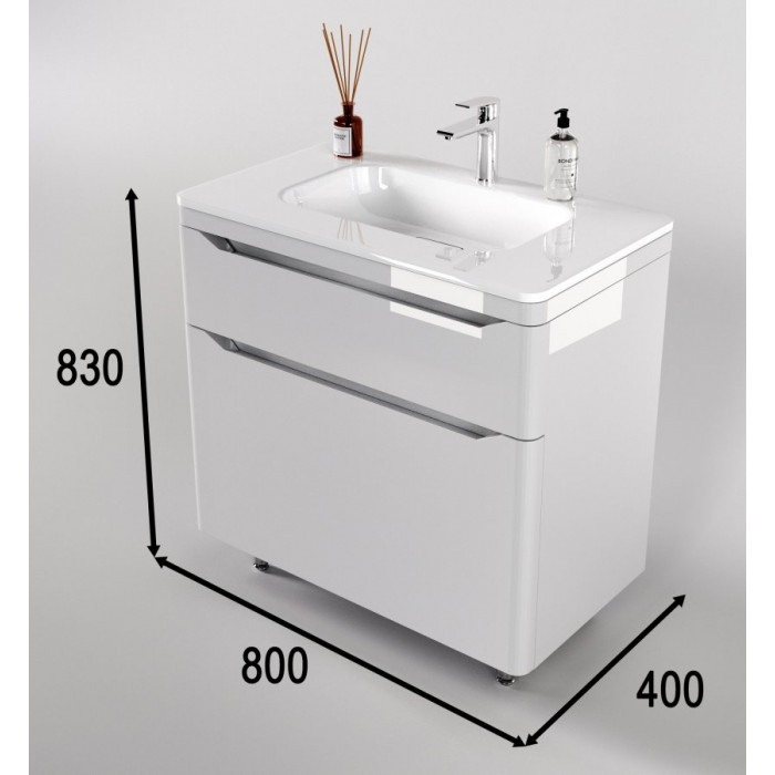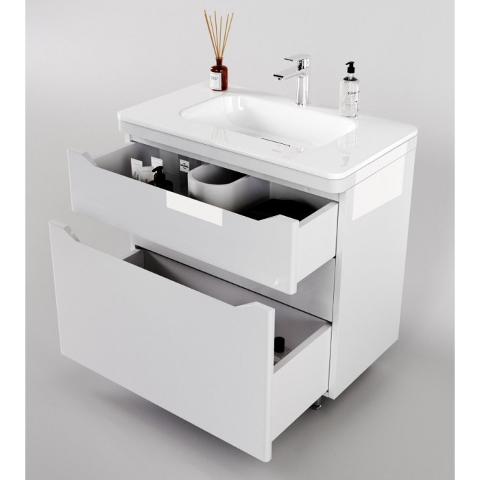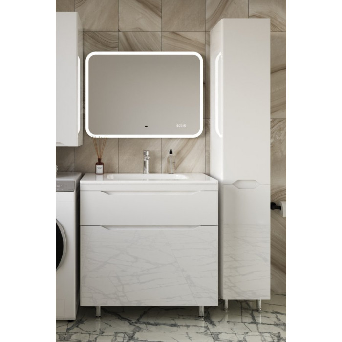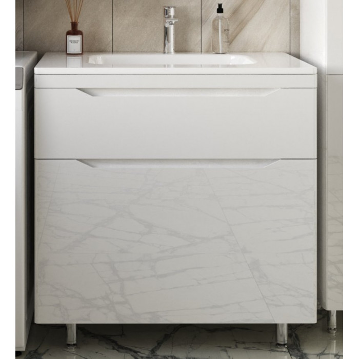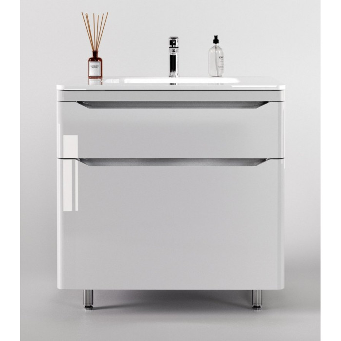 Тумба напольная Style Line Марелла 80 (2 ящ.) Люкс антискрейтч белый глянец, PLUS СС-00002402