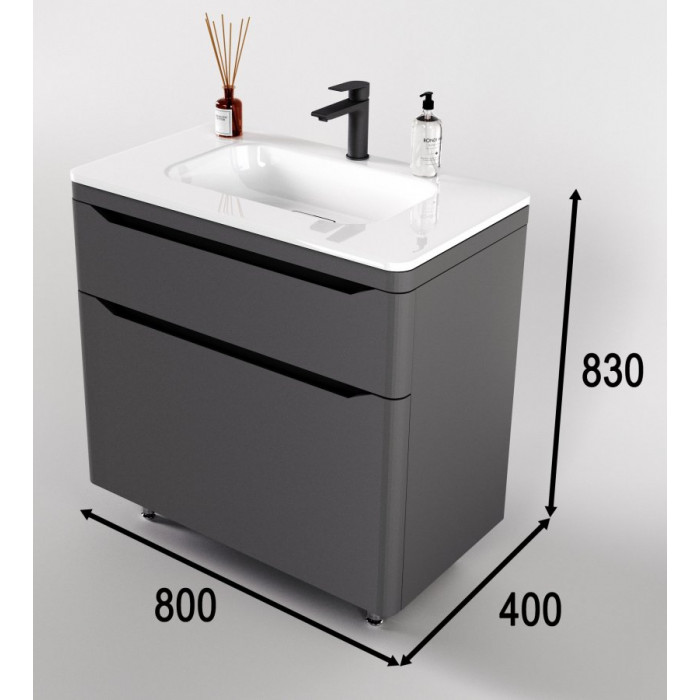 Тумба напольная Style Line Марелла 80 (2 ящ.) Люкс антискрейтч серый, PLUS СС-00002403
