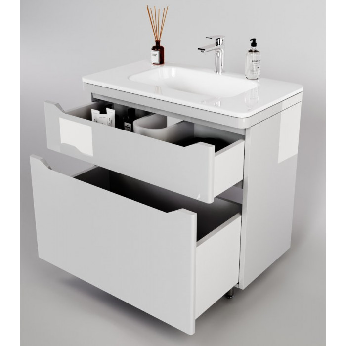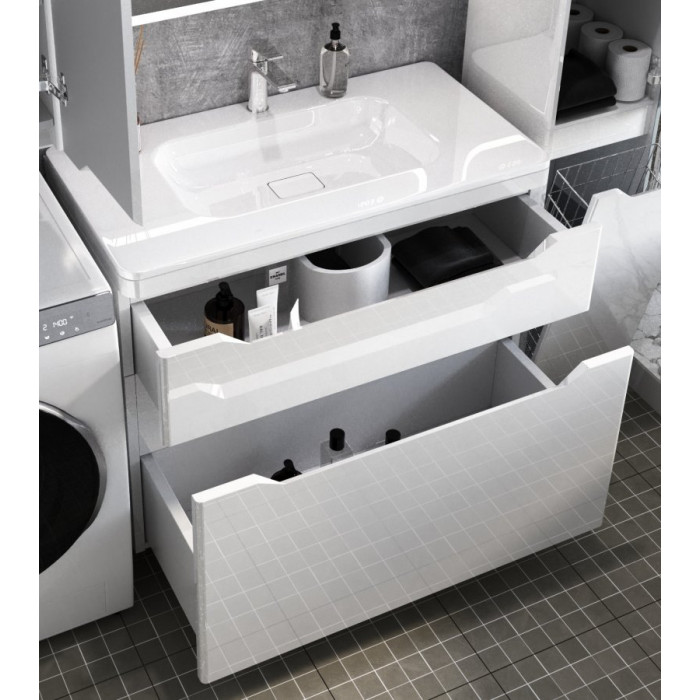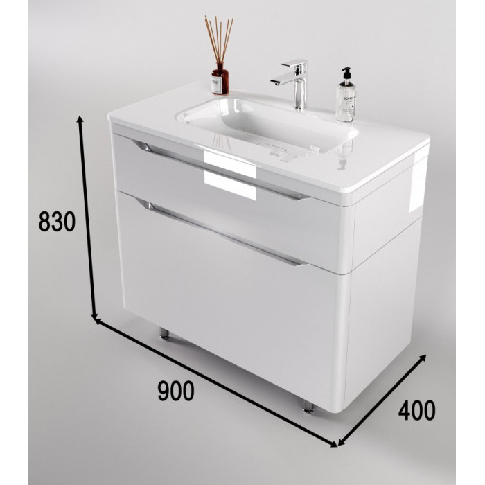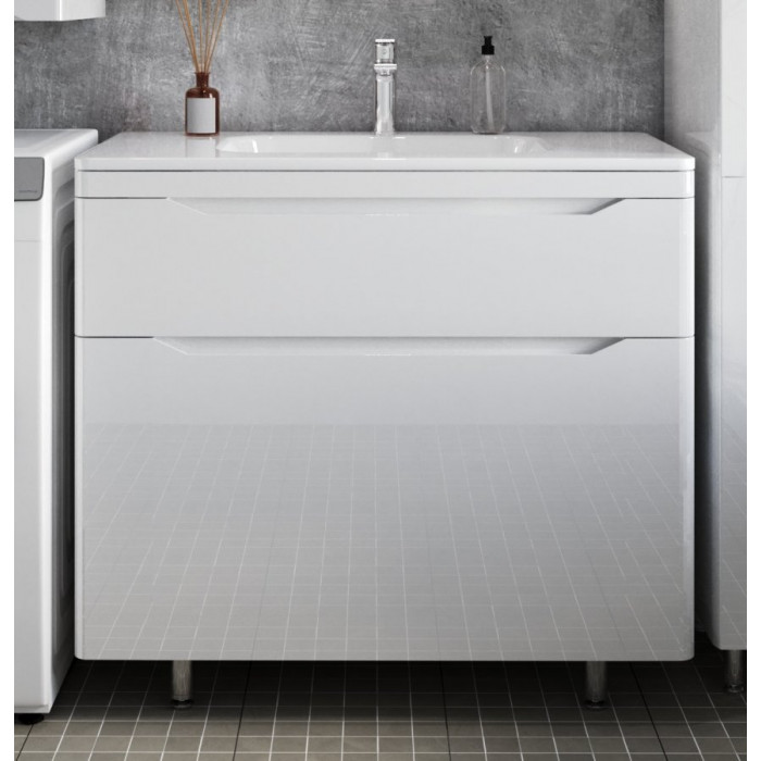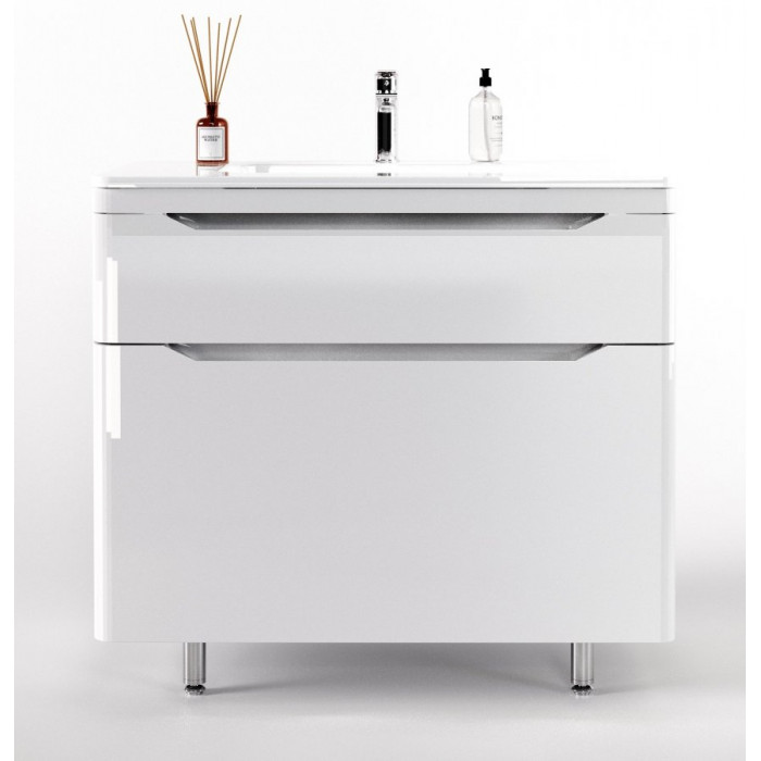 Тумба напольная Style Line Марелла 90 (2 ящ.) Люкс антискрейтч белый глянец, PLUS СС-00002417