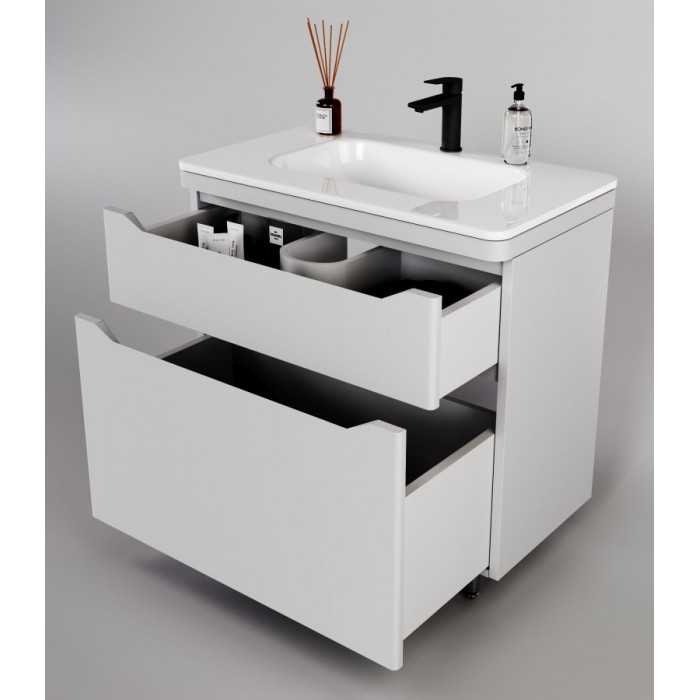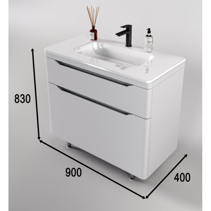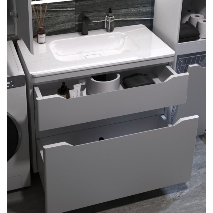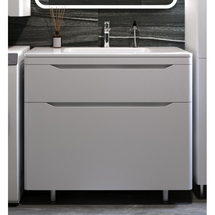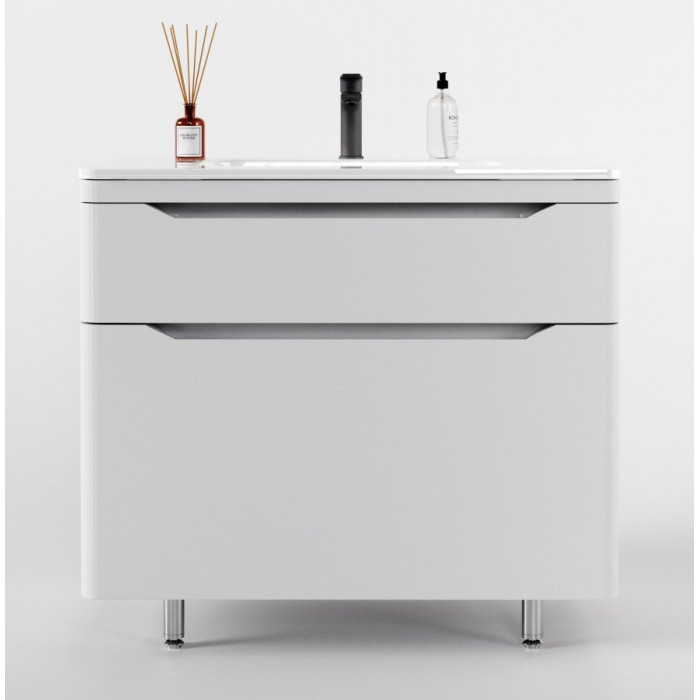 Тумба напольная Style Line Марелла 90 (2 ящ.) Люкс антискрейтч белый матовый, PLUS СС-00002416