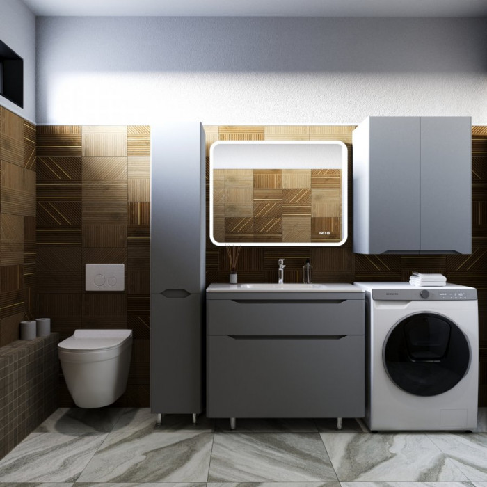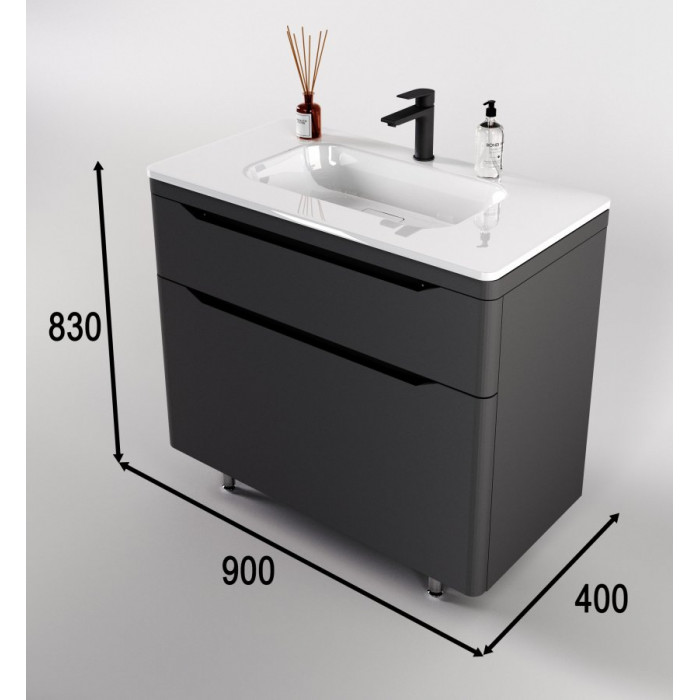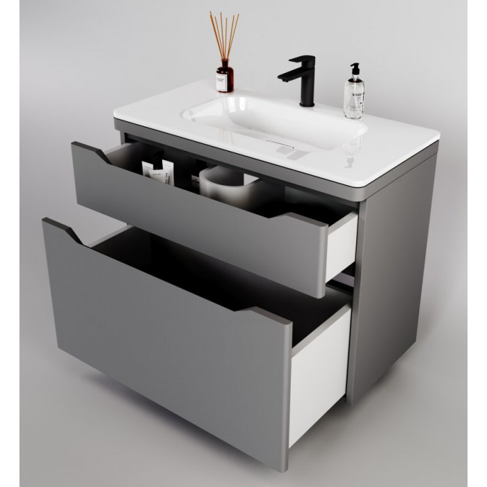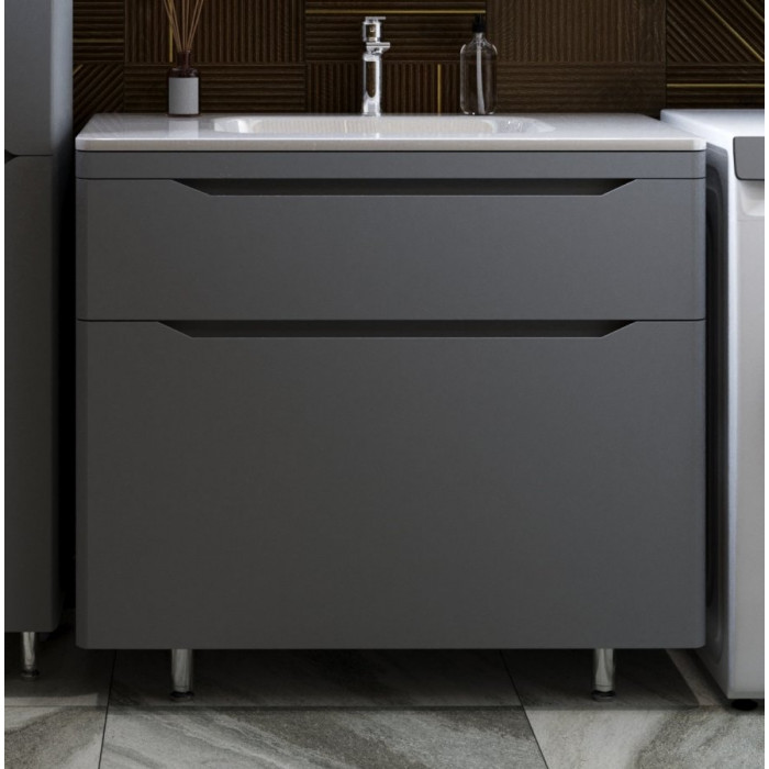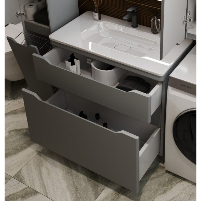 Тумба напольная Style Line Марелла 90 (2 ящ.) Люкс антискрейтч серый, PLUS СС-00002418