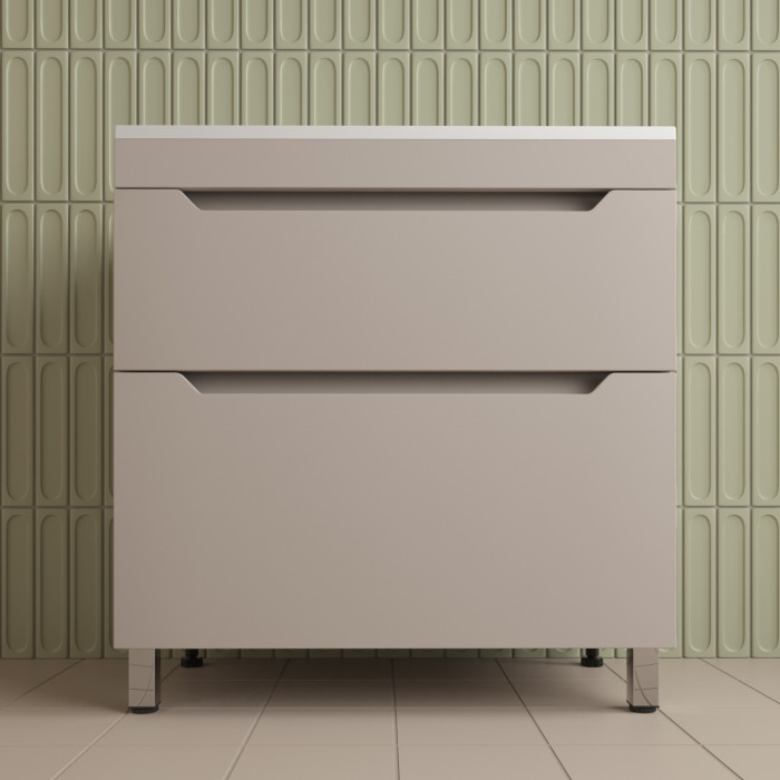 Тумба напольная Style Line Остин под раковину Фортуна 80 2 ящ крем эмаль PLUS ЛС-00002397-3 Дополнительно: Умывальник Фортуна 800*450 кварц серый шелк ЛС-00002395 МДФ эмаль напольный с ящиками 1 год Россия Эмаль премиум класса Hesse (Германия) с сатиново - матовым эффектом. Вместительные ящики оснащены системой плавного закрывания HETTICH.