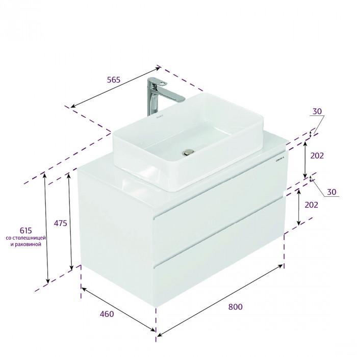Размеры тумбы без учета раковины: 80x46x46 см.