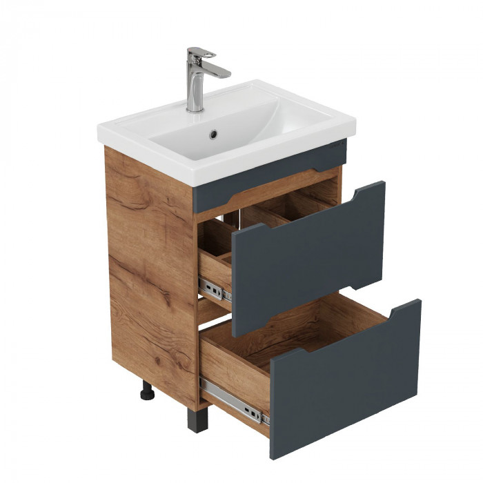 Тумба под раковину Onika Айленд 50 напольная, графит/дуб крафт золотой (ум. Фостер 50) 105042