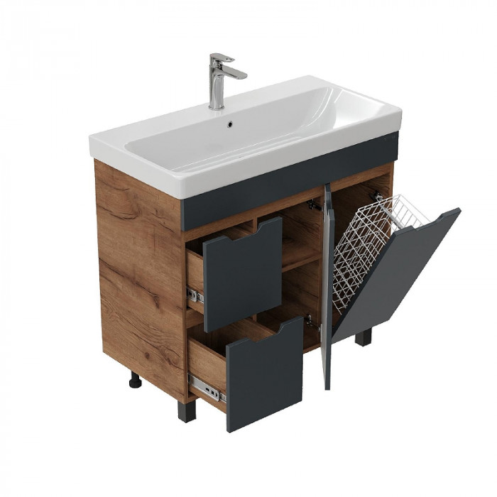 Тумба Onika Айленд 90 напольная, графит/дуб крафт золотой, с корзиной (ум. Адриана 90)