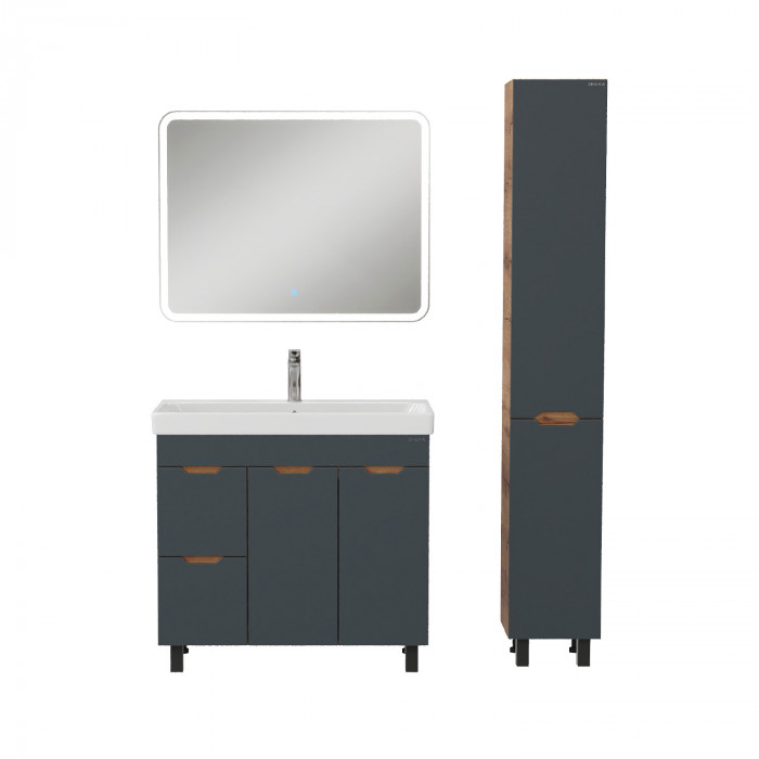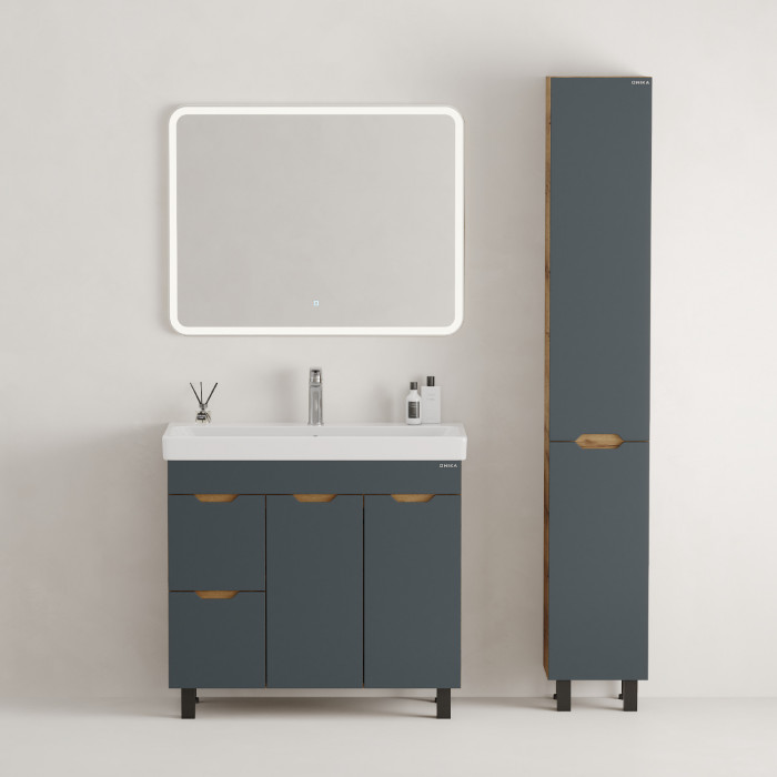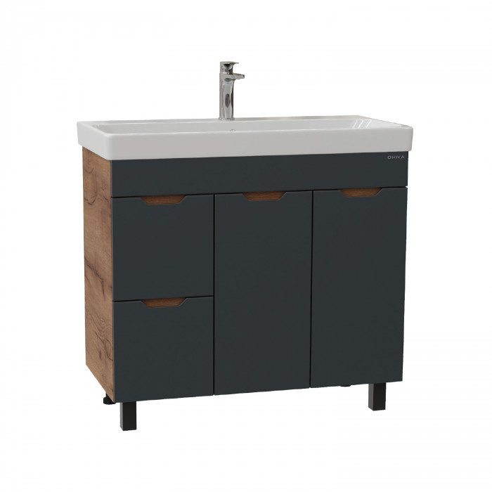 Тумба под раковину Onika Айленд 90 напольная, графит/дуб крафт золотой, с корзиной (ум. Адриана 90) 109032