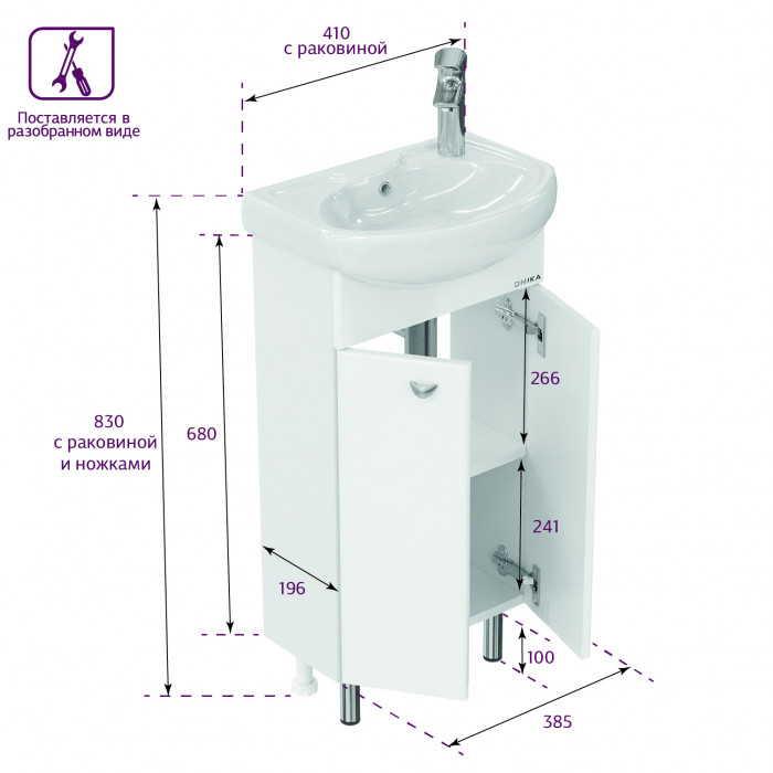 Размеры тумбы без учета раковины и ножек: 38*20*68 см.