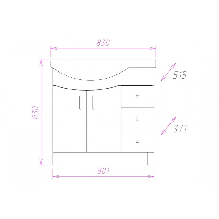 Размеры тумбы без учета раковины и ножек 80x37x68 cм.