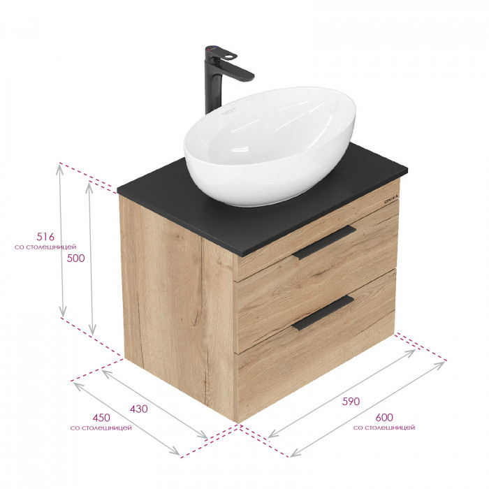 Совместимая столешница - Столешница под раковину Onika 60х45 чёрная