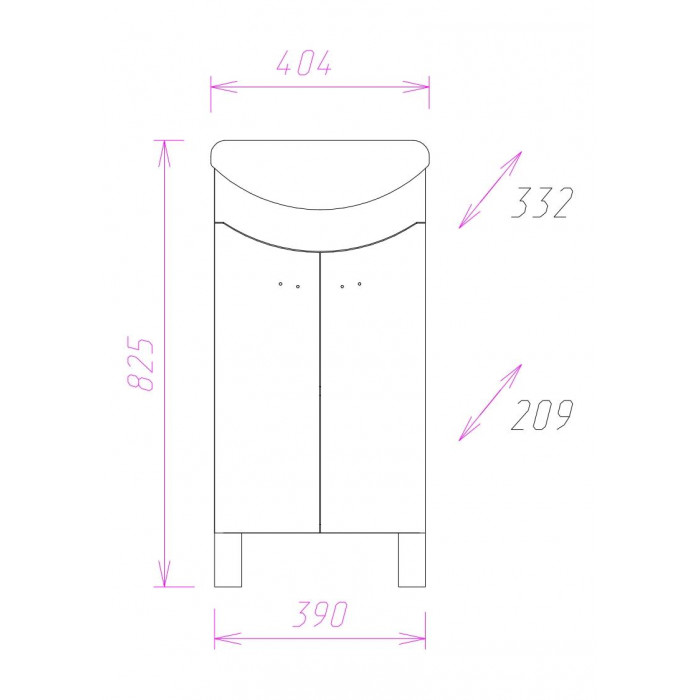 Размеры тумбы без учета раковины и ножек: 39*21*68 см.