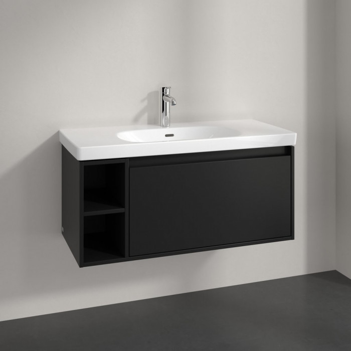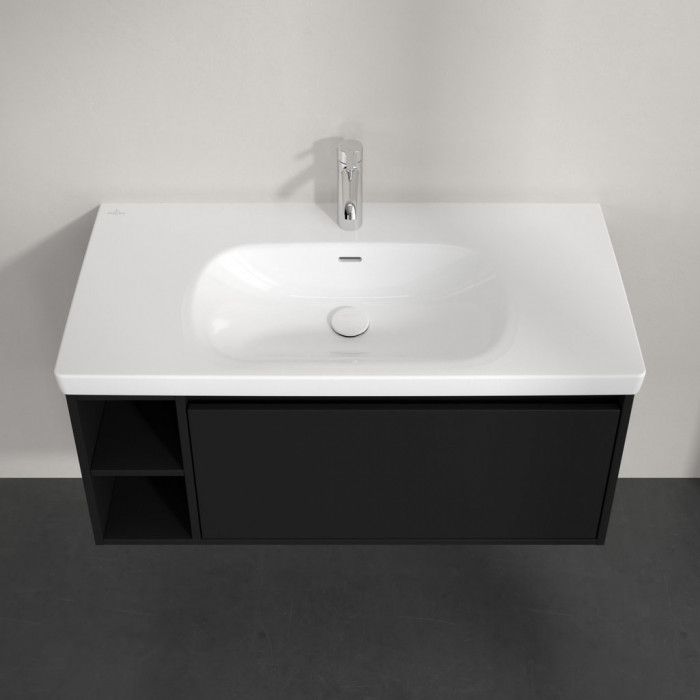 Тумба под раковину, 1 выдвижной ящик 2 открытые ниши Villeroy & Boch Skyla C79000VL цвет Volcano Black