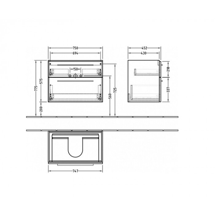 Тумба под раковину, Villeroy&Boch, Verity Design, ширина, мм-750, глубина, мм-450, высота, мм-575, тип установки-подвесной, форма мебели-прямоугольная, раковина-необходимо заказать, количество раковин-1, монтаж раковины-встраиваемый, ящики-2, открывание-выдвижное, материал корпуса/фасада-МДФ, цвет корпуса-белый, цвет ручки-хром, цвет-белый