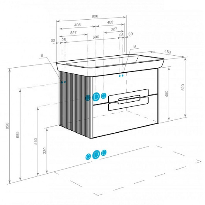 Идеальный комплект с тумбой составит раковина Нео Классик 850 код 325065 ( не входит в комплект,докуавется отдельно)