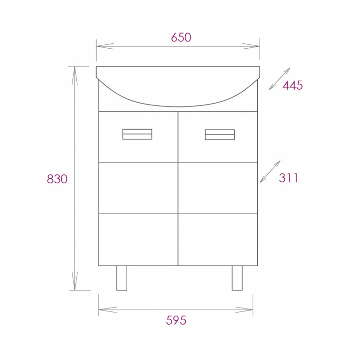 Размеры тумбы без учета раковины и ножек: 59x31x68 см.